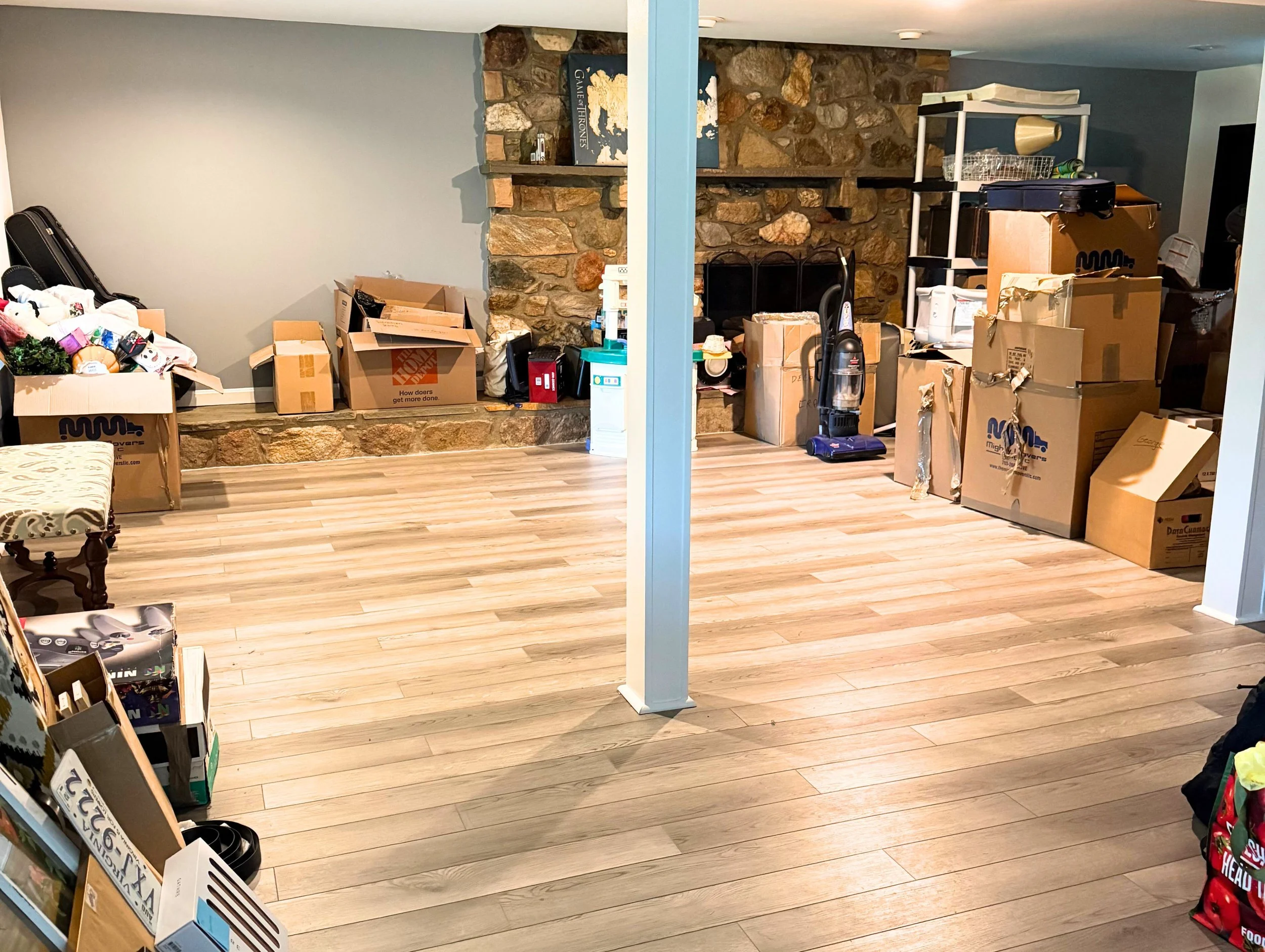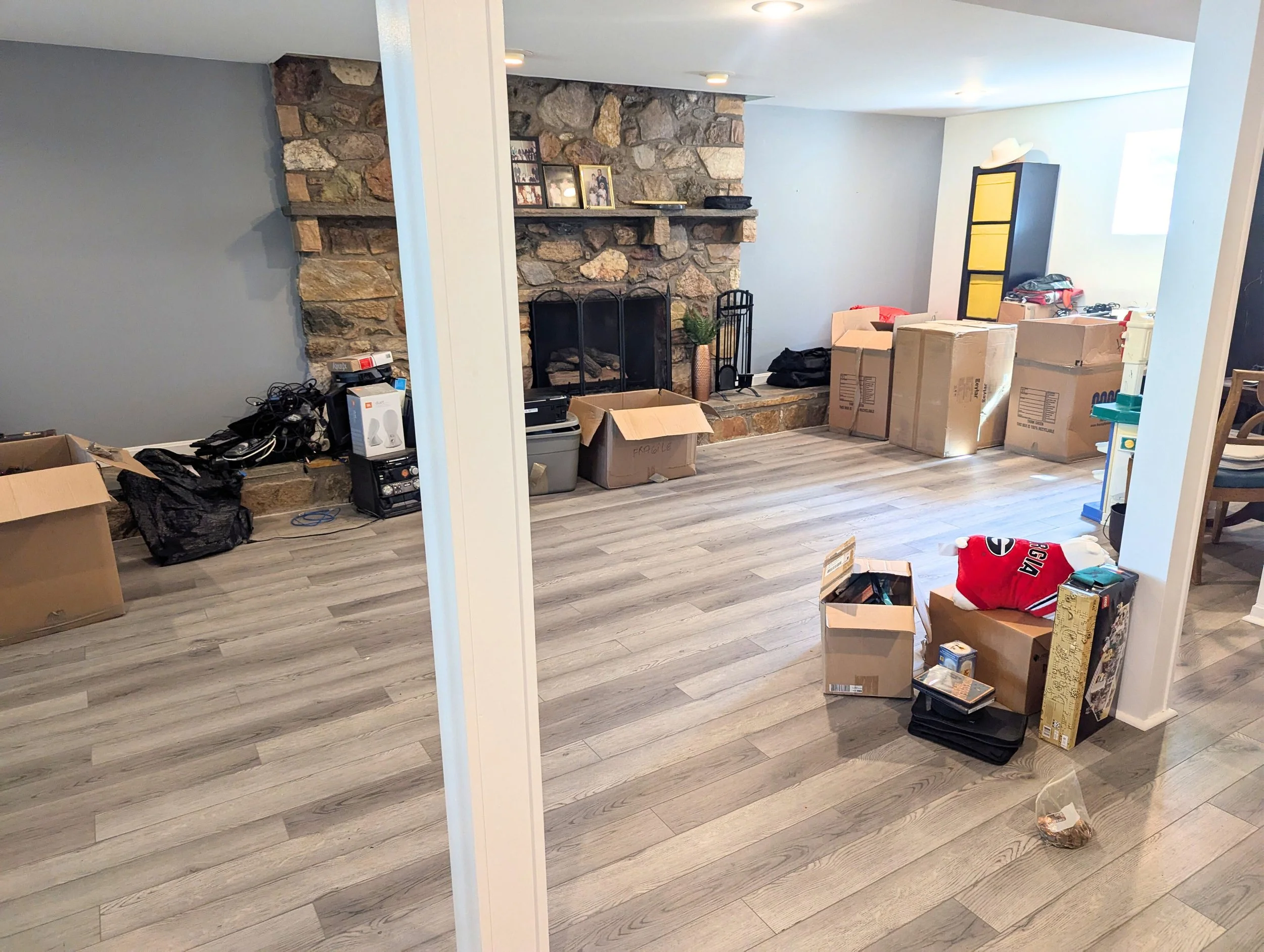 This family moved into a beautiful new home, and needed to address 10 years worth of storage boxes and hand me downs in their basement. After a month of consistent work, the space was ready to transform into a play area for their young kids!