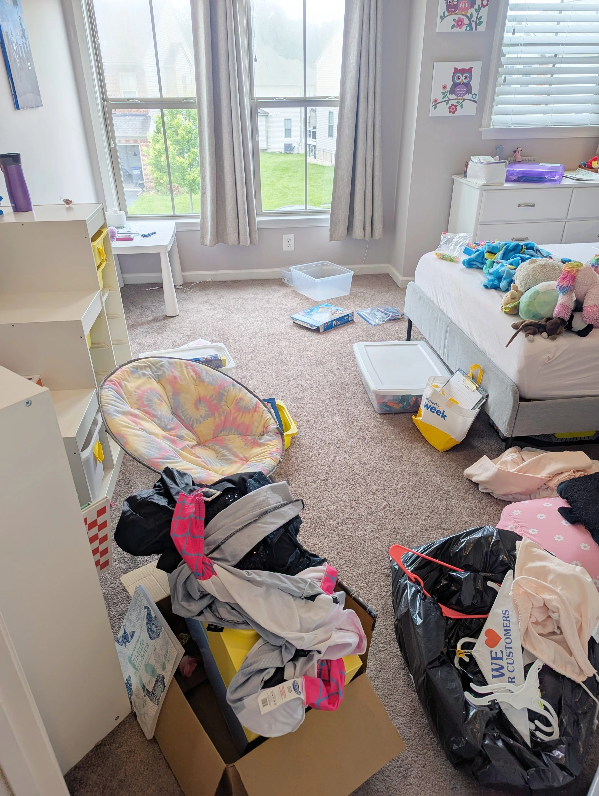 We love having kids care for their spaces! This hardworking little one made a LOT of decisions about artwork, toys, and clothes, to be able to fully enjoy and maintain her room again.
